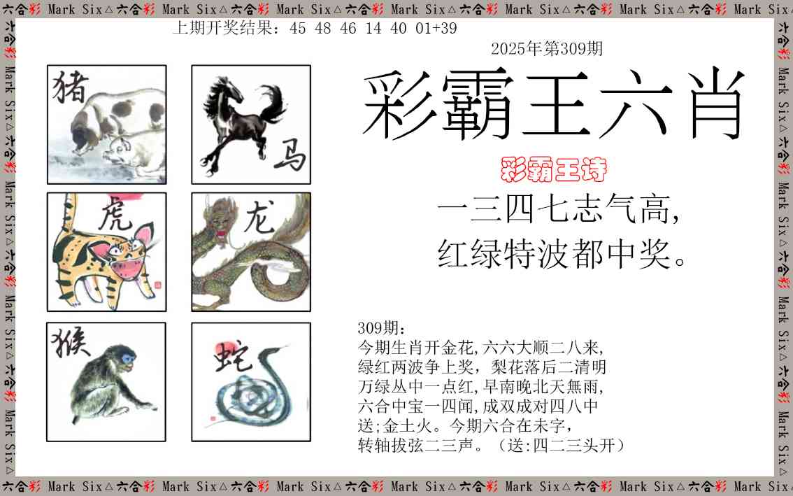 309期 单【蛇鸡羊兔】 双【虎龙狗猴】 开??准