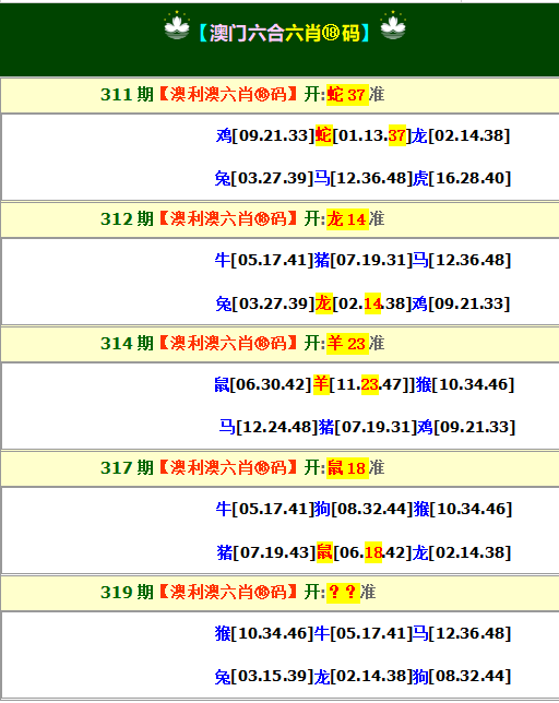 319期 单【猪羊鸡牛】 双【龙狗马虎】 开??准
