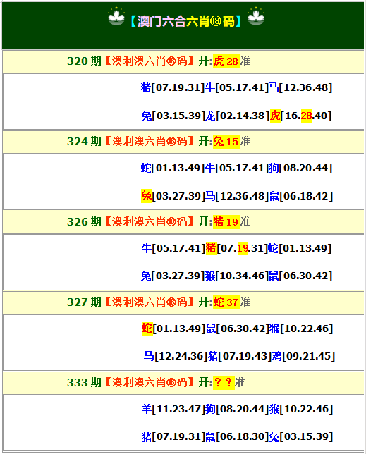 319期⑤肖【马羊虎鸡牛】开 鸡45 准